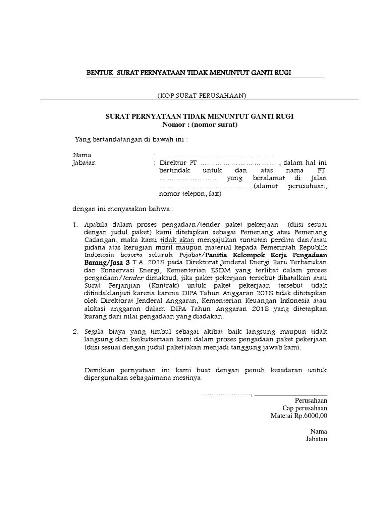 Contoh Surat Tuntutan Ganti Rugi Kerosakan